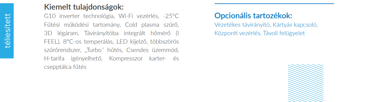 Oldalfali klíma felszerelésének és beüzemelésének díja 4 kW teljesítményig bruttó 85.900 Ft 3 méteres csőszakaszig kábelcsatornázás nélkül (a 3 méteres alapszerelés kábelcsatornázásának felára összesen bruttó 13.000 Ft), mely az alábbiakat tartalmazza:
