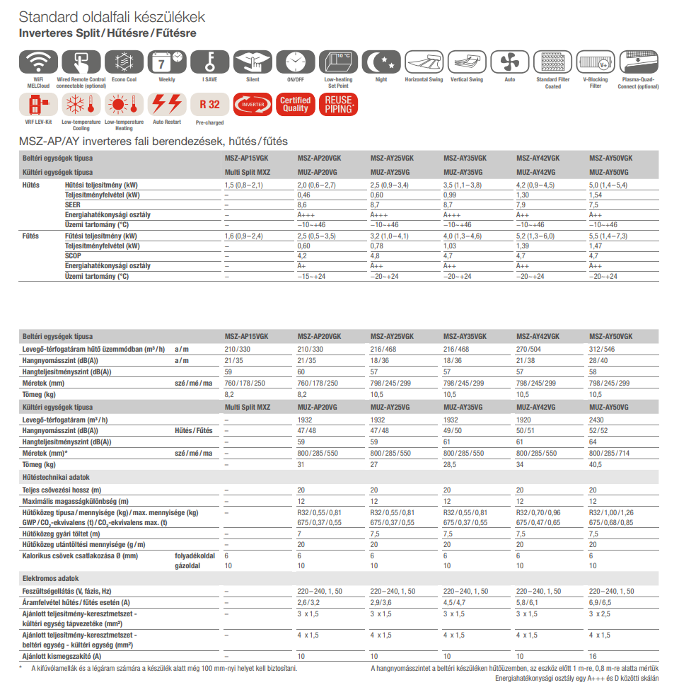 A Mitsubishi MSZ-AY35VGKP / MUZ-AY35VG általános szerelési információi: